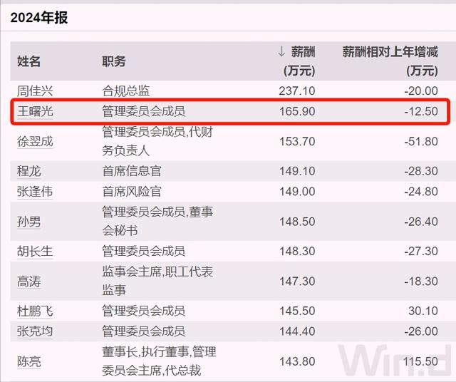 而到了2024年,薪酬最多的是合格总监周佳兴,税前超过237万元;王曙光薪酬166万元,董事长陈亮薪酬144万元。