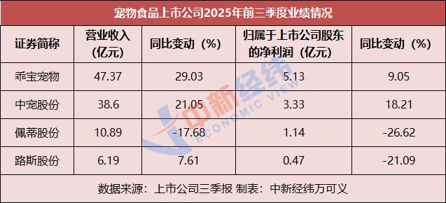 中新经纬11月3日电 近日,A股宠物食品上市公司(申万分类)2025年三季报已披露完毕。