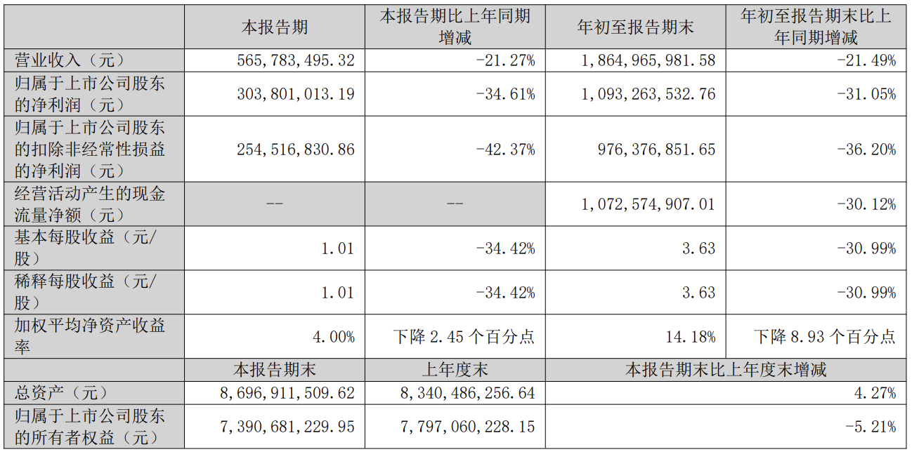 根据爱美客最新发布的2025年前三季度财报显示,今年前三季度,爱美客实现营收18.65亿元,同比下滑21.49%;实现净利润为10.93亿元,同比下滑31.05%;扣非净利润为9.76亿元,同比下滑36.20%。
