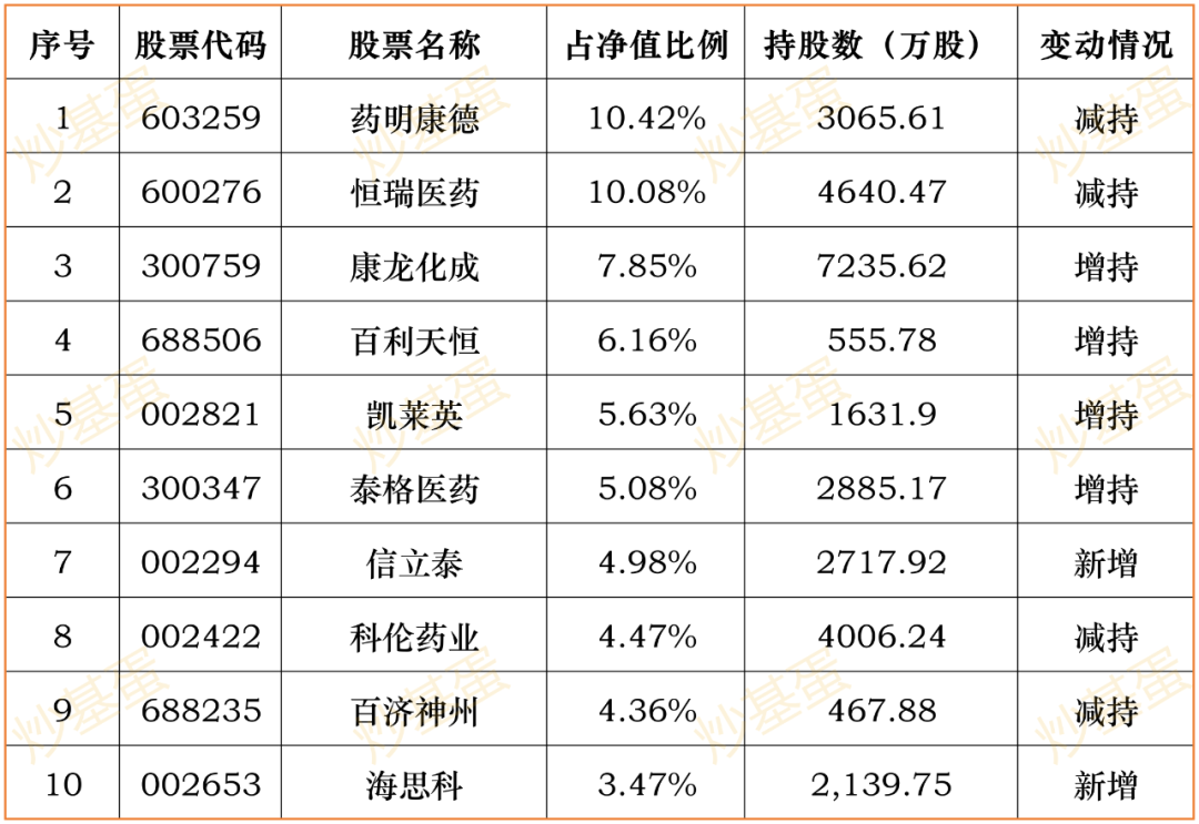 前十持仓股占比54.73%→62.50%。新增信立泰、海思科,其余各有增减。3季度涨22.55%。葛兰算是依靠医药主题起来的基金经理,同时另一只医药创新侧重创新药,业绩要明显好很多。另外,她还管理一只全行业选股的基金,科技属性比较强,侧重芯片半导体,业绩也很炸裂。