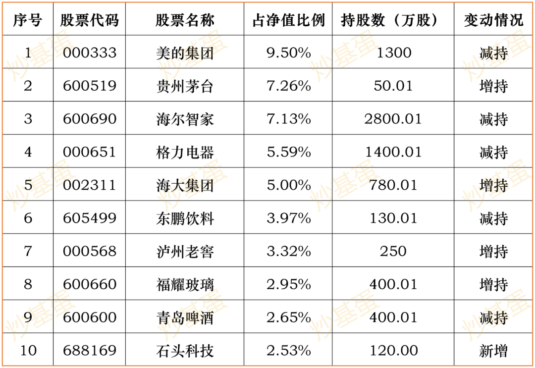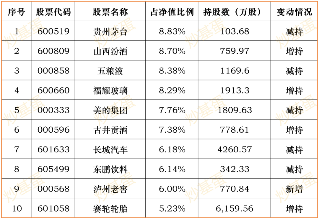 前十持仓股占比71.19%→72.89%,3季度涨8.83%。新增赛轮轮胎,其他各有增减。其他同样是传统消费行业。