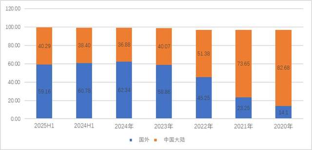 至2024年,公司海外收入占比62.34%,同比增长12.16%,国内收入下降2.52%,较上年28.59%的降幅,已大幅放缓,未来进一步下探的空间亦不大。