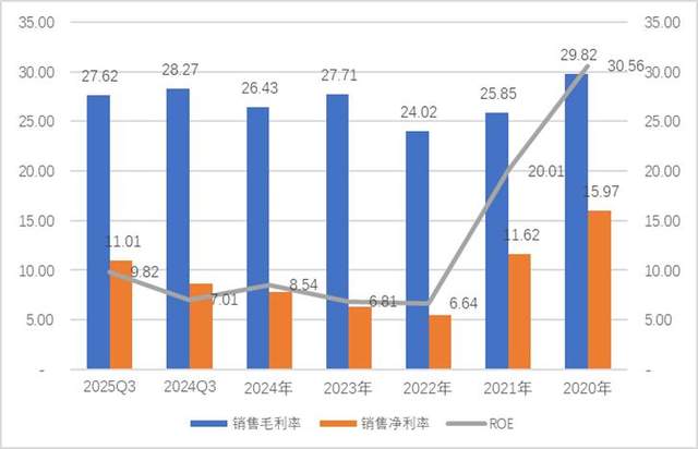 图:2020年至今销售毛利率、销售净利率、ROE;来源:wind
