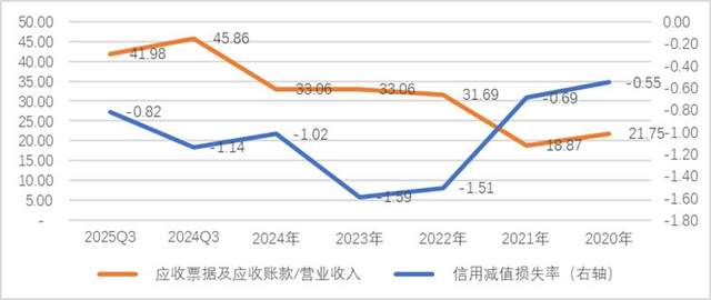 图:应收票据及应收账款/营业收入、信用减值损失率,单位:%:来源:wind