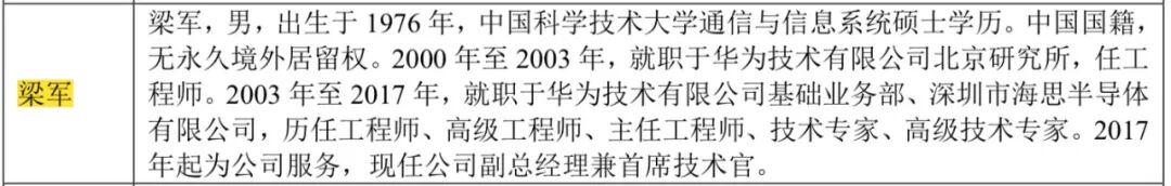 到2017年7月31日,梁军跳槽入职寒武纪,担任首席技术官岗位。