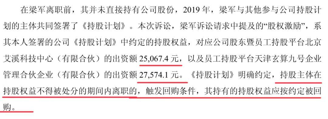 根据双方当时签署的《持股权益》称,梁军在持股权益不得被处分的期间内离职,否则触发回购条件。所以,离职后他所持有的股权应被公司回购。