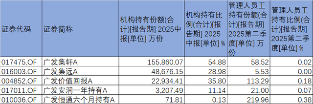 稳健的历史业绩表现,让张雪赢得了投资者的认可。Wind数据显示,截至今年上半年,广发集轩的机构持有份额达到15.59亿份,占比达54.88%,同时,广发集轩还被广发基金的员工持有58.52万份。