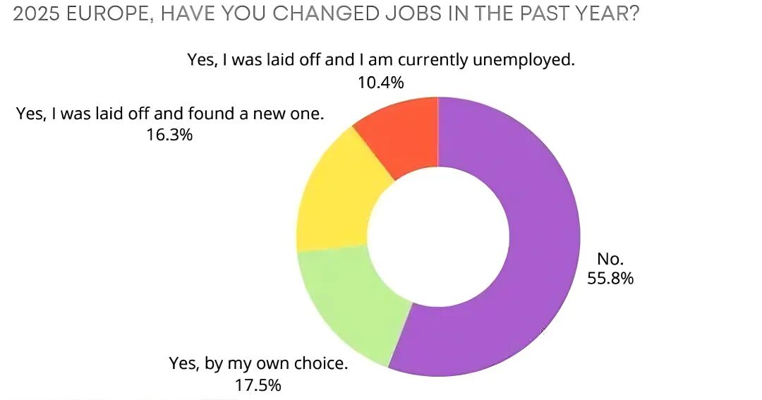 2024年,有26.7%欧洲游戏开发者被裁员,其中10.4%的人,至今仍旧