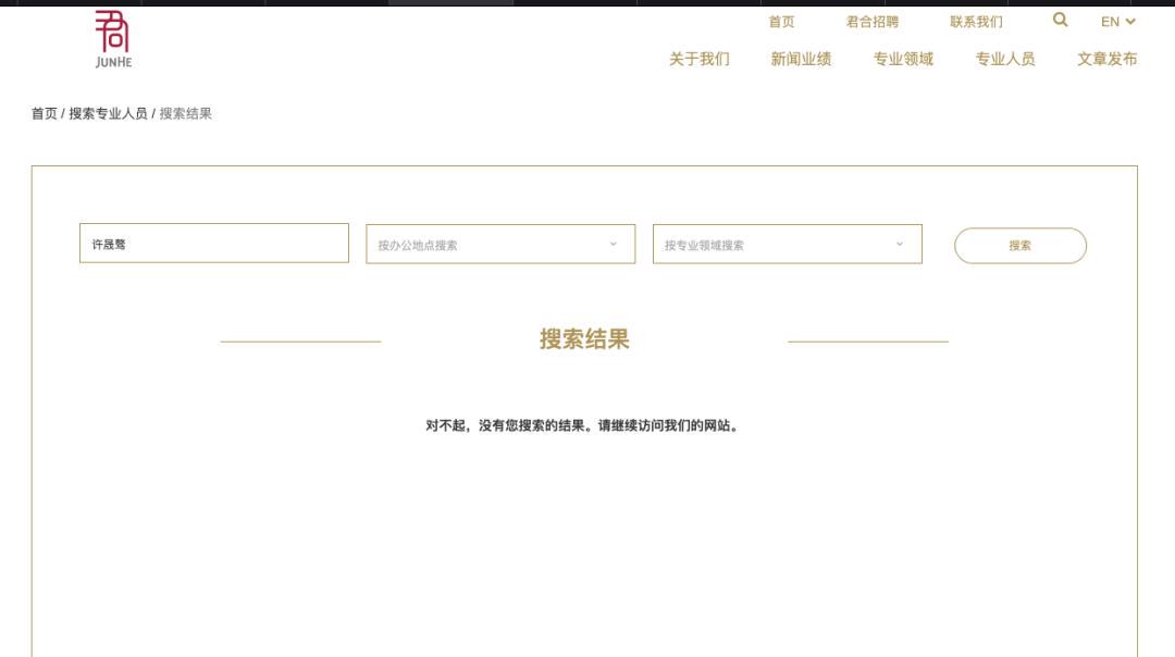 视频曝光后,君合采取了低调但迅速的行动。截至11月5日,事务所虽未发表官方声明,但其官网的合伙人介绍页面中,许晟骜的资料已被撤下,链接显示“没有您搜索的结果”。
