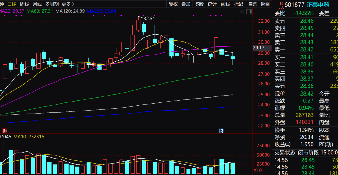 有意思的是,如此稳健的盈利表现并未充分反映在股价走势上。在财报发布当日,正泰电器股价上涨了6.42%之后,之后三个交易日几乎将涨幅全部抵消。而且自今年4月至今,该股涨幅也就50%左右。