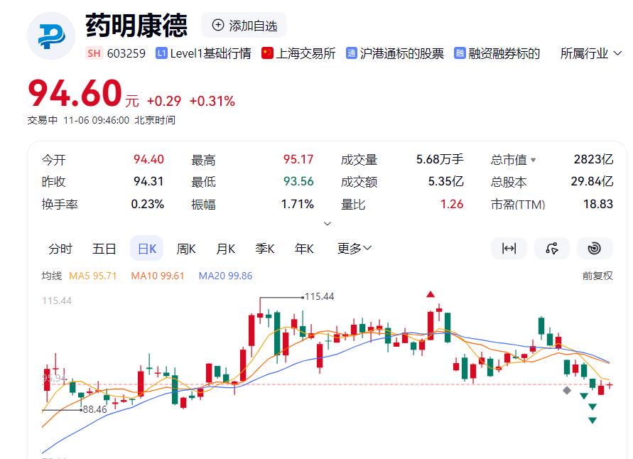另外,就在10月26日公司发布超预期的财报后不久,10月30日公司公告,公司实际控制人控制的股东计划根据市场情况自本公告披露日起15个交易日后的3个月内,通过集中竞价和/或大宗交易方式减持公司A股股份,减持股份数量不超过公司总股本的2%,即合计不超过59675143股。这一公告引发多米诺效应,药明康德的股价在当日回到了百元之内,对浸淫在二级市场的中小股东来说可谓痛并快乐着。截至发稿前,股价为94.6元/股。