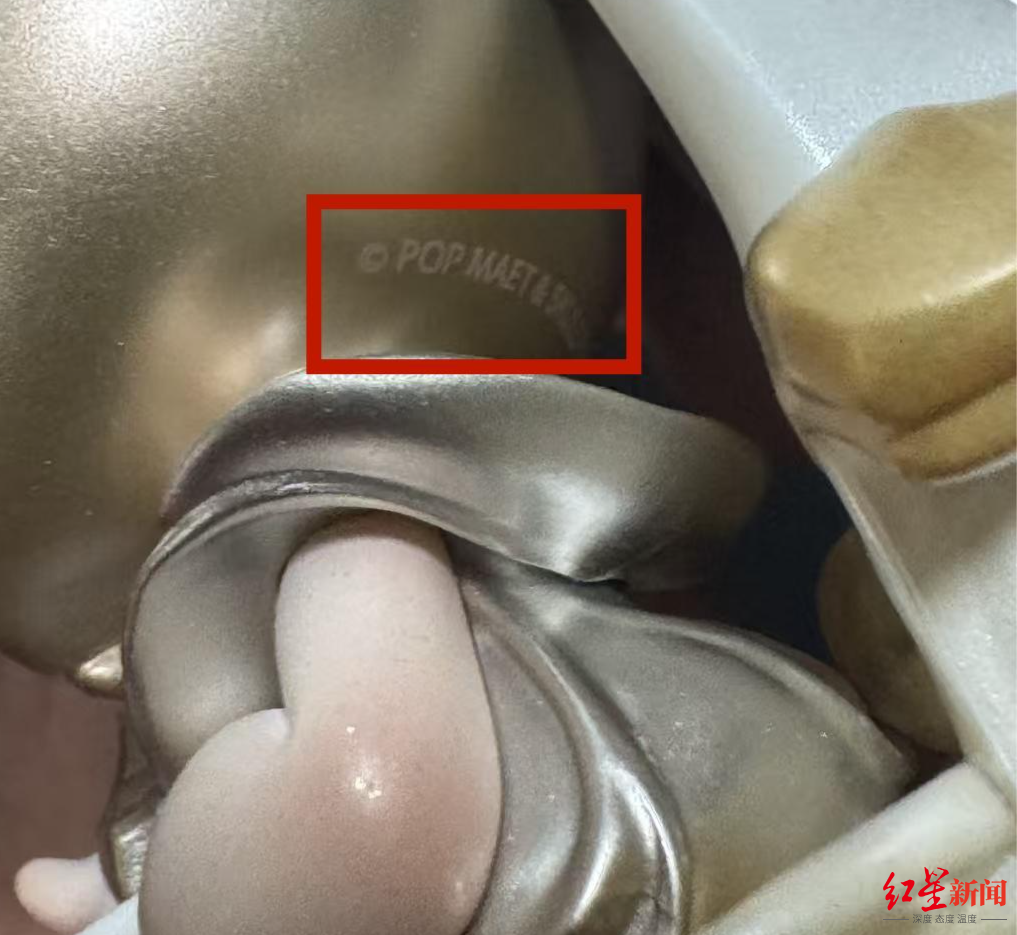 “买过很多SP产品了,一般都是两个logo,一个是POP MART,一个是POP MART&SKULLPANDA。”11月6日,陈女士(化名)告诉红星资本局。陈女士在该系列手办发售的第二天在机器人商店购买,到手之后发现印在手办头部位置的“POP MART&SKULLPANDA”变成了“POP MAET&SKULLPANDA”。