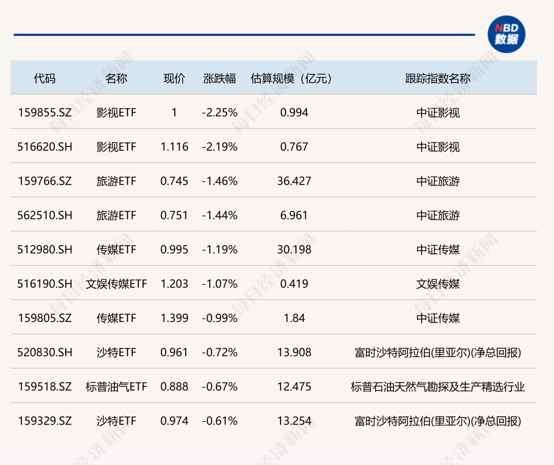 下跌方面,影视ETF跌超2%。