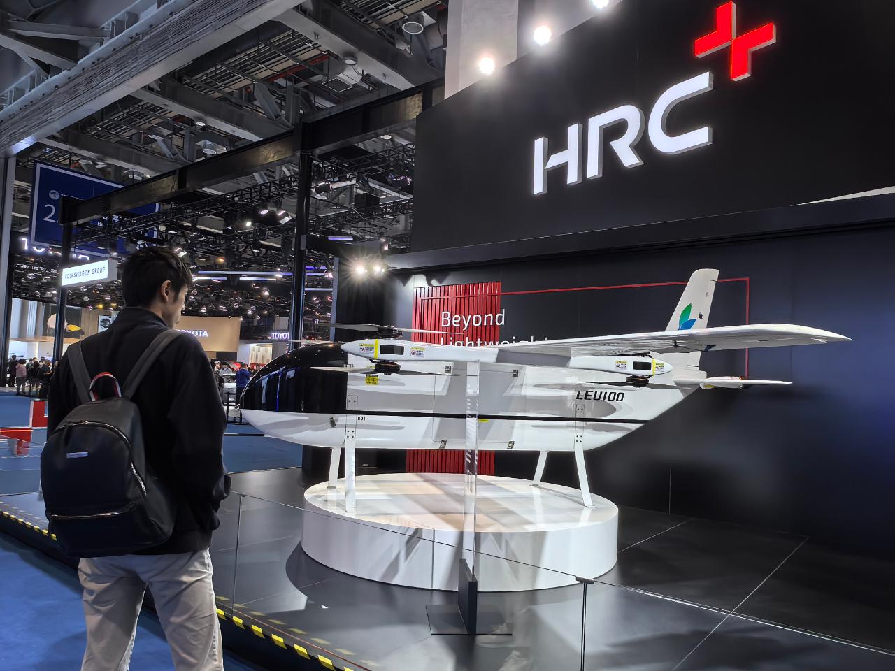 HRC在进博会全球首展中型电动垂直起降物流无人机LEU100。