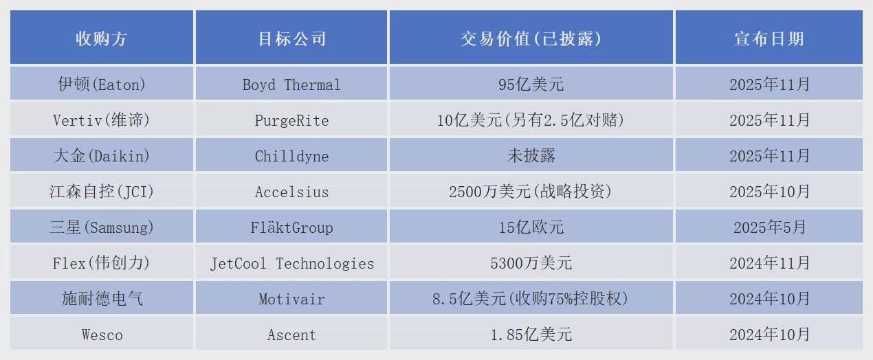 事实上,近一年来,全球液冷领域并购案不断涌现。包括伊顿、施耐德电气、Vertiv、三星等在内的传统工业霸主,相继斥巨资并购液冷技术,以捍卫其在数据中心未来市场中的核心地位。