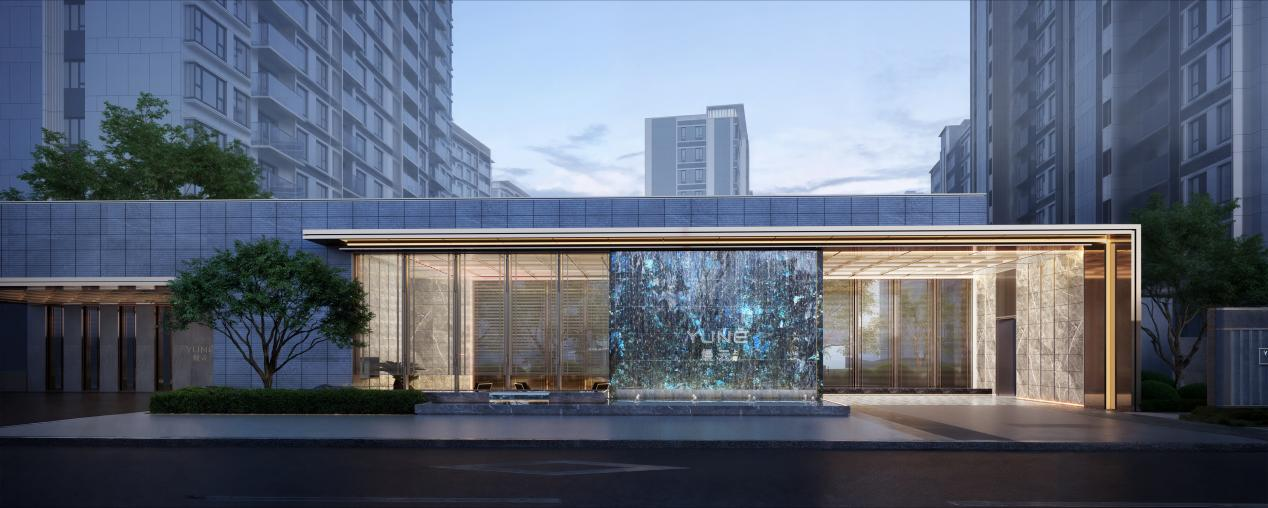 缦云外立面采用大面积铝板,配合香槟金属边框与玻璃幕墙,营造出现代、通透的城市界面。园林延续“折叠景观”理念,三期门头提升、新增水系与雾森系统,形成层次丰富的归家动线,在约3.5万方的园林景观中营造“艺术公园里”的家。