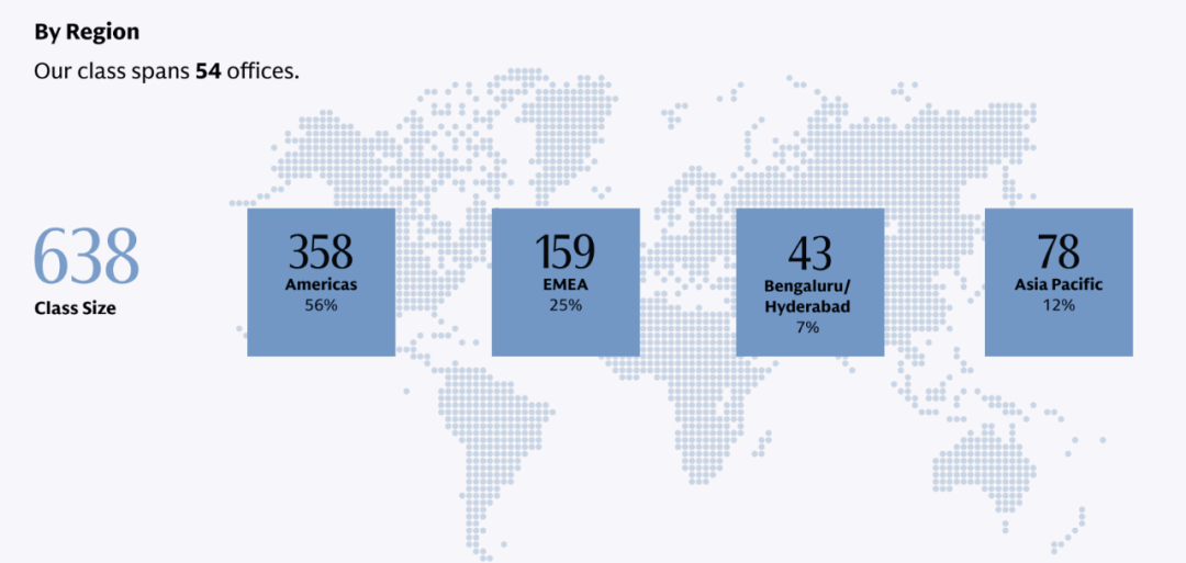 今年新晋升的MD中,包括:56%或358人(2023年56%或339人)来自美洲,25%或159人(2023年29%或176人)来自EMEA(欧洲、中东和非洲),12%或78人(2023年10%或62人)来自亚太地区,7%或43人(2023年5%或31人)来自其他地区。