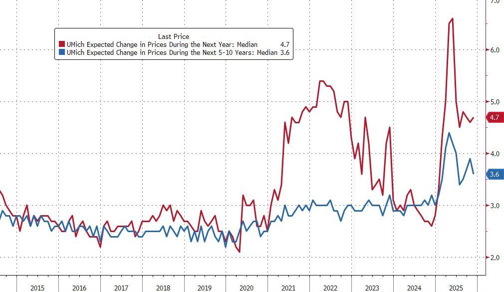 此外,消费者对自身失业概率的预期也恶化,本月升至2025年3月以来的最高水平。