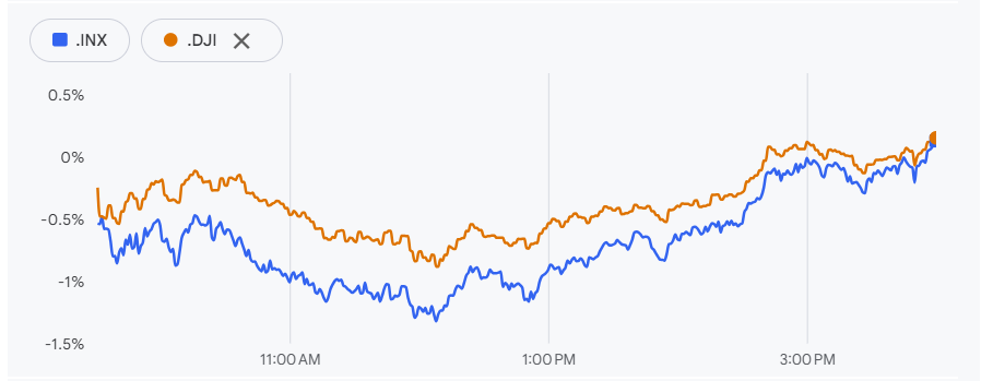 消息传出后,标普500指数几乎完全抹去日内稍早超过1%的跌幅,道指转涨。