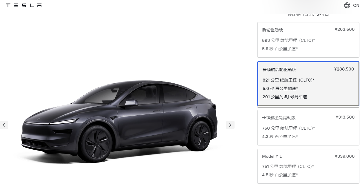 至此,Model Y全系包含4款车型:26.35万元起的后轮驱动版、28.85万元起的长续航后轮驱动版、31.35万元起的长续航全轮驱动版、33.9万元起的六座版Model Y L。