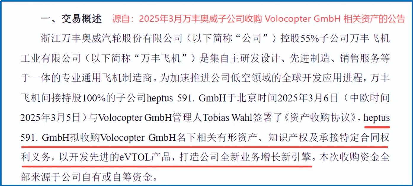 但万丰奥威并未止步,2025年3月再次出击,以1000万欧元收购了德国eVTOL巨头Volocopter的核心资产。