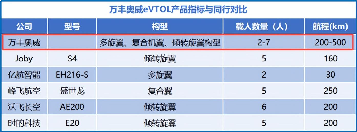 而若从核心性能来看,万丰奥威的eVTOL产品无论是在飞机构型上,还是在载人数量与航程上,表现都更加出色。