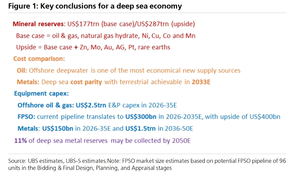 综合来看,深海经济为投资者提供了一条清晰的、从短期到长期的投资路径。据瑞银报告称,