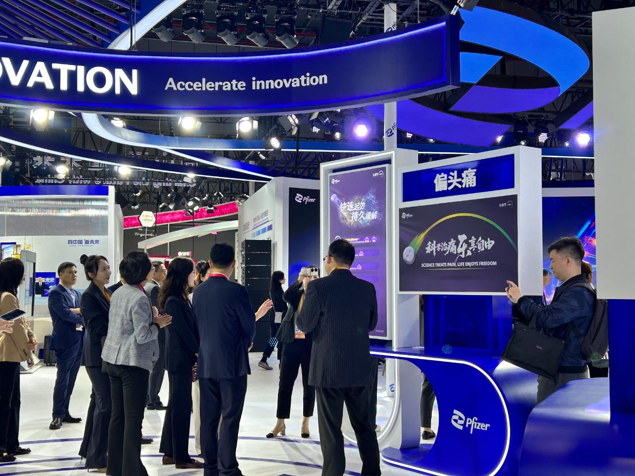 诺华展台前,一名工作人员正在向观众展示其放射性配体治疗平台的运作原理。“这套创新治疗方案能够精准靶向表达特定标志物的肿瘤细胞,为晚期前列腺癌患者带来新的希望。”该工作人员表示。