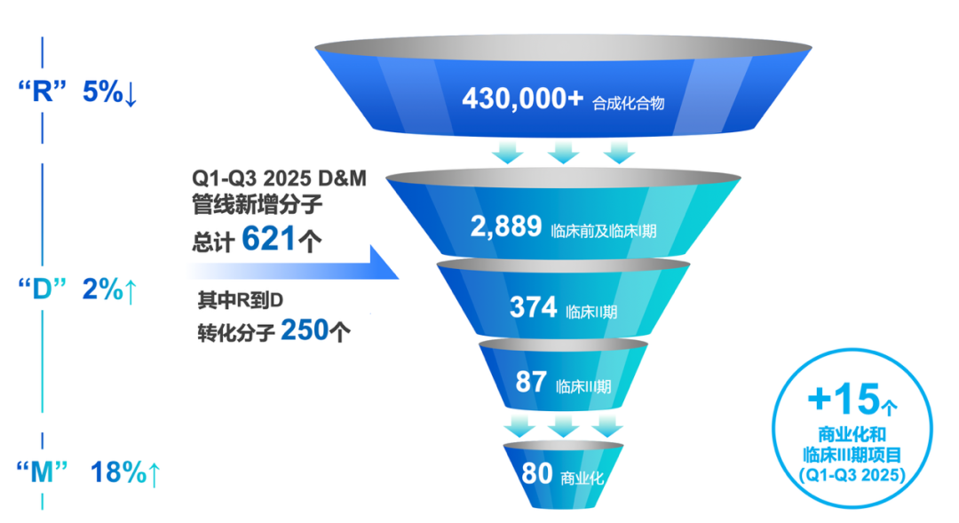 特别是在新冠药大订单后,公司业绩不受高基数影响,而仍能保持稳健增长,主要得益于CRDMO商业模式,驱动临床后期与商业化大项目的持续转化,进而推动产能效率稳步提升,叠加持续优化生产工艺与经营效率,有效平滑了新冠大订单结束后对业绩端的潜在冲击。进入2025年以来,药明康德前三个季度的单季收入同比在15~21%区间,相比前两年的增速中枢又有小幅提升。