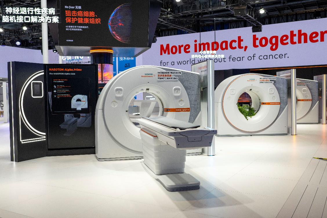 进博会医疗器械及医药保健展区,西门子医疗展出的亚洲首发首展CT机。翁奇羽摄