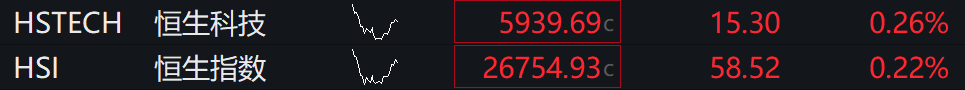 恒生指数涨0.22%,恒生科技指数涨0.26%,医药股、科技股表现活跃。小鹏汽车涨超2%,京东健康、携程、网易等涨超1%;蔚来跌超4%,阿里巴巴跌超2%。