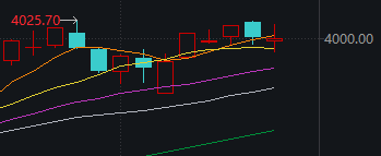 在4000点画一根横轴,可以看到近5个交易日,沪指每天都在上下穿行。只不过,前三天以震荡上穿为主,但这两天有所下滑。
