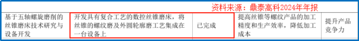 面对这一制约,鼎泰高科快人一步,在2024年就成功开发出了具有复合工艺的数控丝锥磨床,将螺纹加工工序集成在了一台设备上。