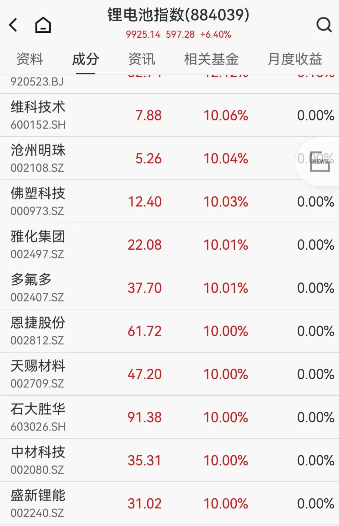 宁德时代大涨超7%,锂电池概念股大面积涨停。尾盘储能概念持续走强,海博思创触及20cm涨停,再创历史新高。