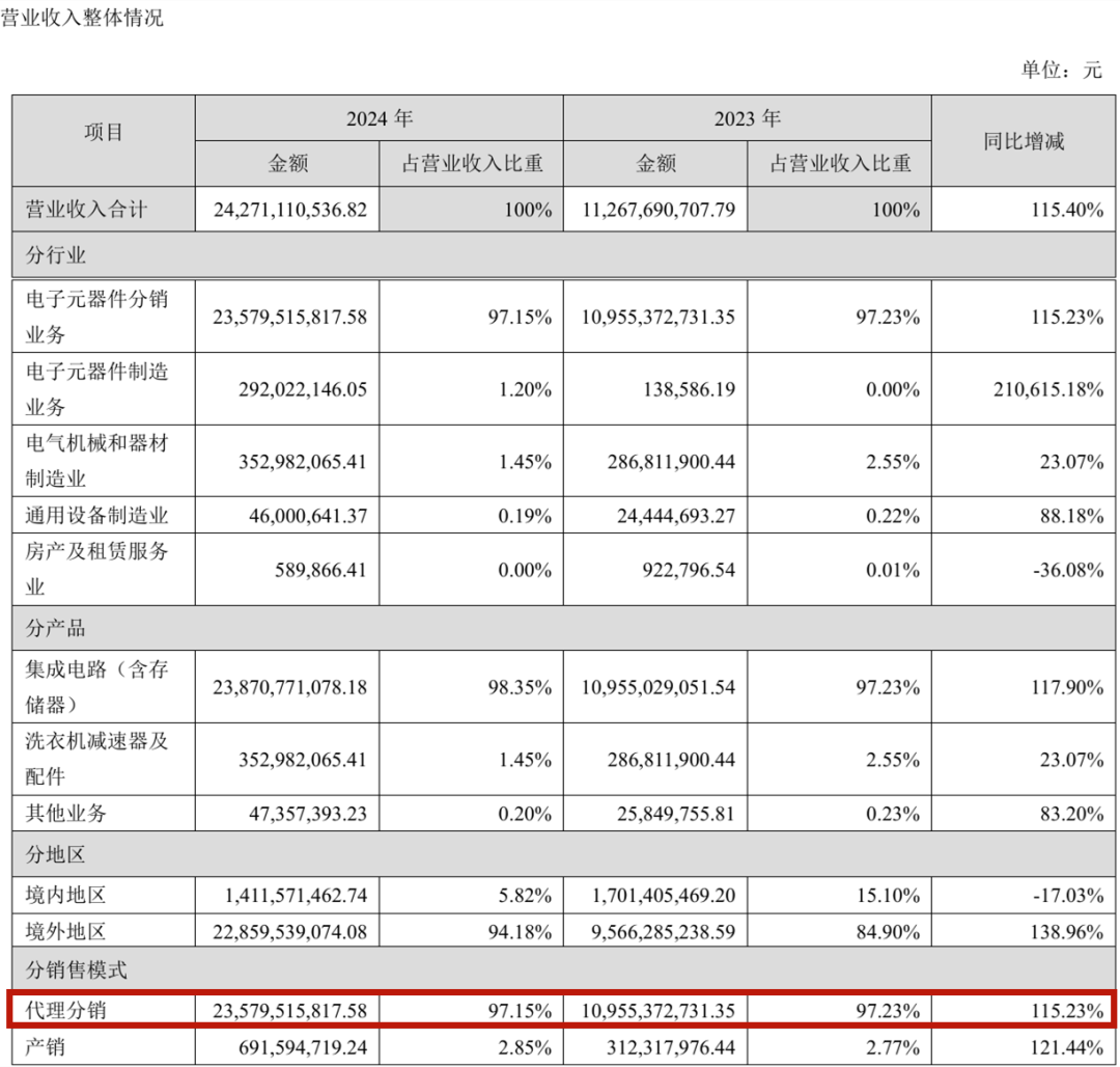公司主营电子元器件分销业务,同时布局存储芯片自主研发。