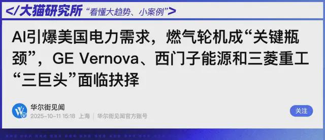 在电网+储能之外,大家还不放心,要确保万无一失,就得配备燃气轮机,这个需求也很旺盛,最大的三家——GE、西门子、三菱现在产能告急,交货期从18个月拉长至37个月,还要涨价20%。
