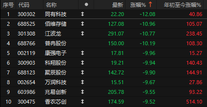 今天A股存储板块也是大跌,同有科技暴跌超12%,佰维存储、江波龙、普冉股份均跌超10%。