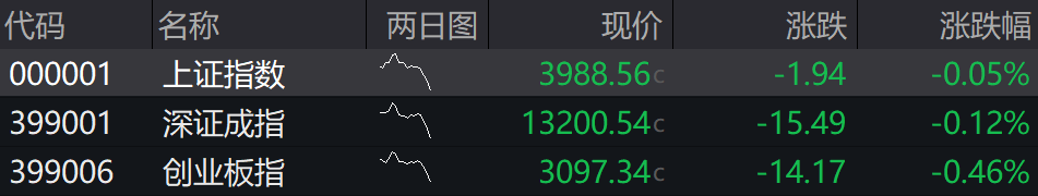 沪指低开0.05%,深成指低开0.12%,创业板指低开0.46%。