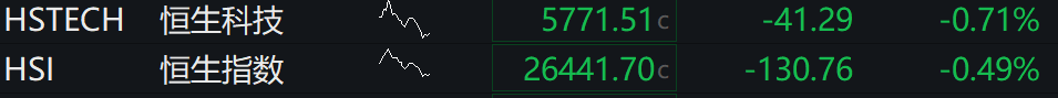 恒生指数低开0.49%,恒生科技指数跌0.71%。科技股普遍回调,电网、机器人、旅游板块跌幅靠前。