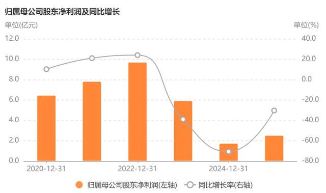 2022年归母净利润差一点就突破10亿大关,但是2023年下滑39%,2024年更是大幅度下滑71%,差一点就亏损,今年前三季度依然同步下滑30%。