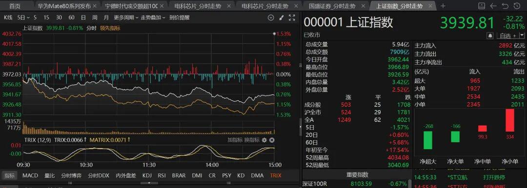 今日A股市场延续调整态势,沪指走出日线三连阴行情,并且跌至30日线附近,4000点好像渐行渐远了。有投资者感叹:“开始怀念4000点收费站了。”