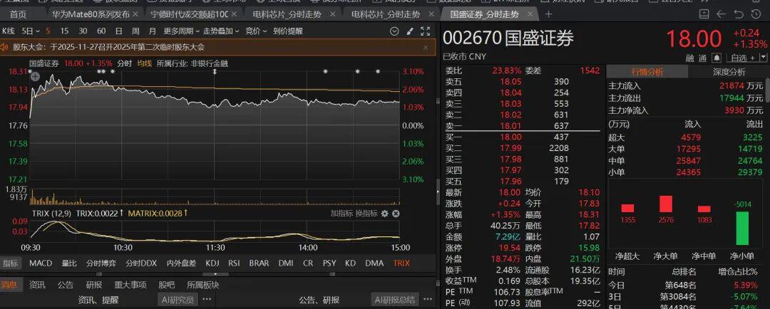 另外,华为官宣将于11月25日14:30举行新品发布会,届时将发布华为Mate 80系列、Mate X7及多款全场景新品。业内预期华为Mate 80系列或将首发搭载全新的麒麟9030芯片。