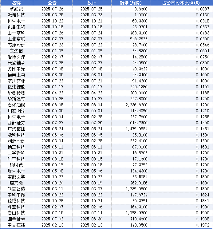 根据同花顺数据,除了寒武纪、山子高科之外,仍有超过30家公司的回购比例不达0.2%。