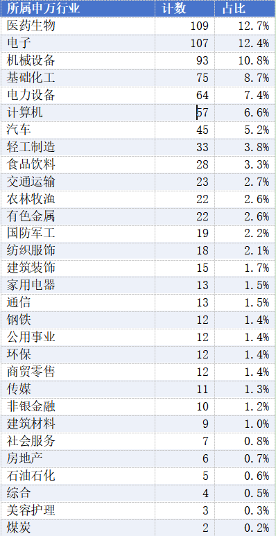 医药生物行业占比最高