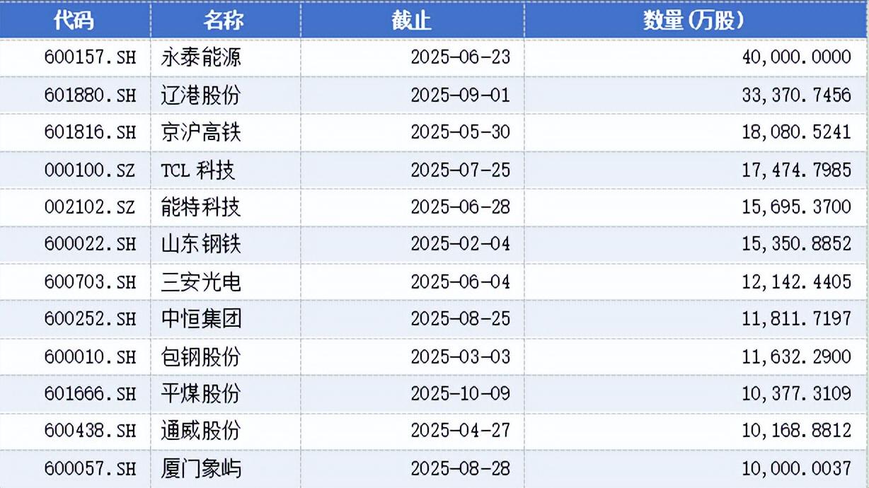 从已完成股份回购的企业回购数量来看,永泰能源、辽港股份、京沪高铁、TCL科技、能特科技、山东钢铁、三安光电、中恒集团、包钢股份、平煤股份、通威股份、厦门象屿累计回购数量较多,均超1亿股。