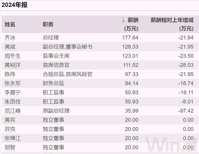 至于高管,则集体降薪,其中总经理齐冰减少约22万元,还剩178万元,依旧是最高。其余高层多在百万元以上,独立董事也有20万元薪酬。董事长徐朝晖2024年开始不从公司领取薪酬,2023年的税前薪酬为94.5万元。