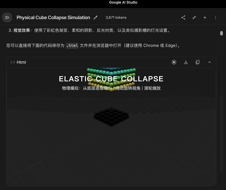 2.模拟弹力球从空中一层一层掉落并弹起的物理过程(目前我测过的只有Claude sonnet 4.5可以抽卡成功)