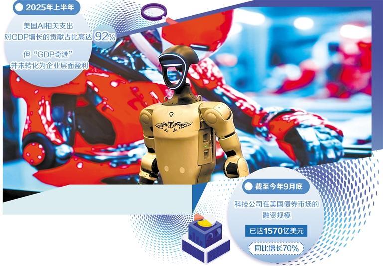 五是资金杠杆风险值得警惕。AI基础设施的巨额投资正推动互联网公司从轻资产向重资产模式转型,挤压自由现金流甚至过度依赖债务融资。截至今年9月底,科技公司在美国债券市场的融资规模已达1570亿美元,同比增长70%。进入四季度以来,这些公司针对AI基建的融资动作只增不减。债务推高了科技公司的杠杆水平,也扩大其信用风险。
