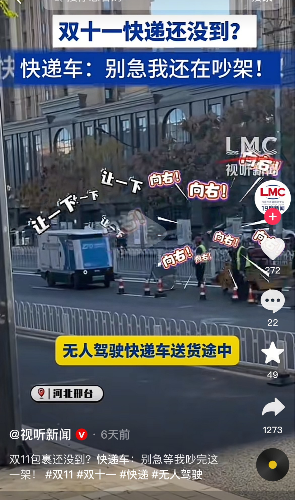 这些没有驾驶员的配送车,不仅能在复杂路况中自主避障,还能顶着烈日、冒着雨水实现全天候不间断配送。