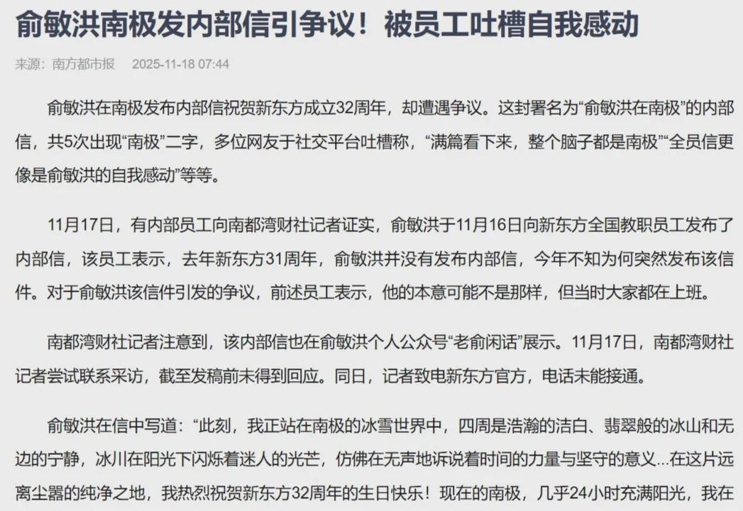 俞敏洪的这碗鸡汤,虽然是从南极端过来的,大家这回却不肯喝了。